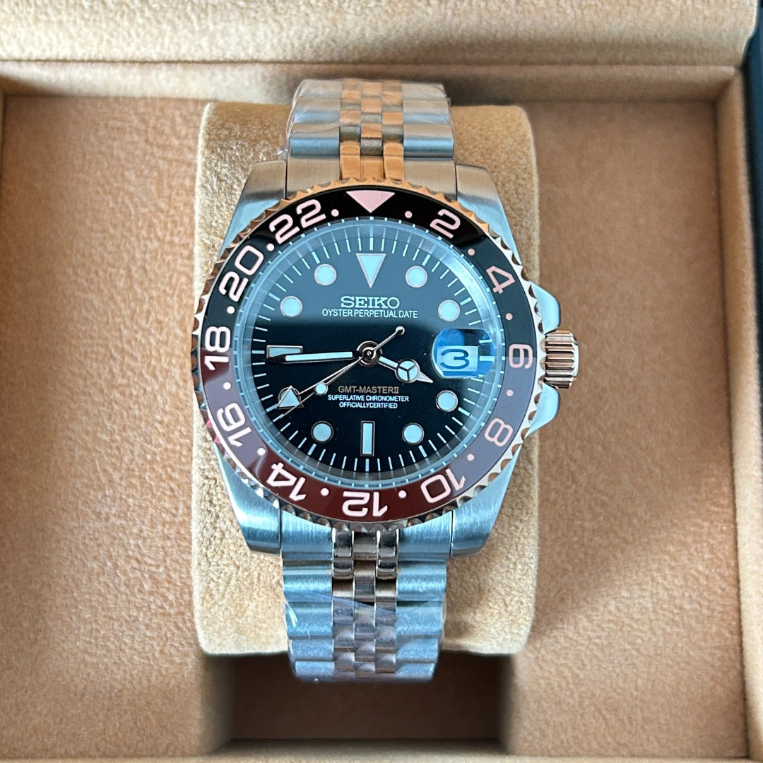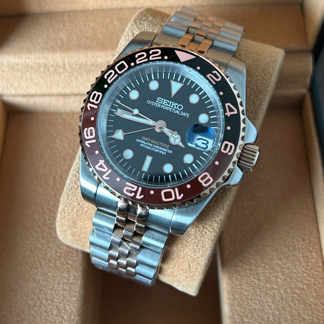 - Movement: Seiko NH34A Automatic (GMT)